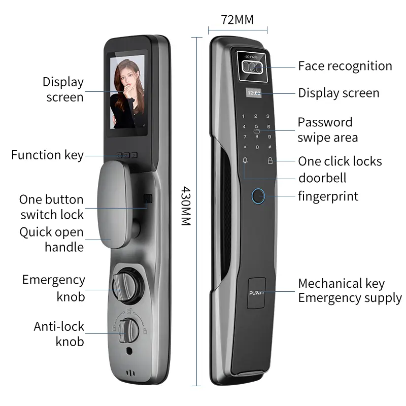 1 मिलियन पिक्सेल कैट आई कैमरा और 1080पी एचडी स्क्रीन से लैस, पुएक्सिन क्यू19 कैट आई स्मार्ट लॉक एक विश्वसनीय दृश्य निगरानी प्रणाली बनाता है। उपयोगकर्ता दिन-रात दरवाजे के बाहर की स्थिति को स्पष्ट रूप से देख सकते हैं, पारंपरिक बिल्ली की आंखों के सुरक्षा खतरों से बच सकते हैं और घर और कार्यालय की सुरक्षा बढ़ा सकते हैं।